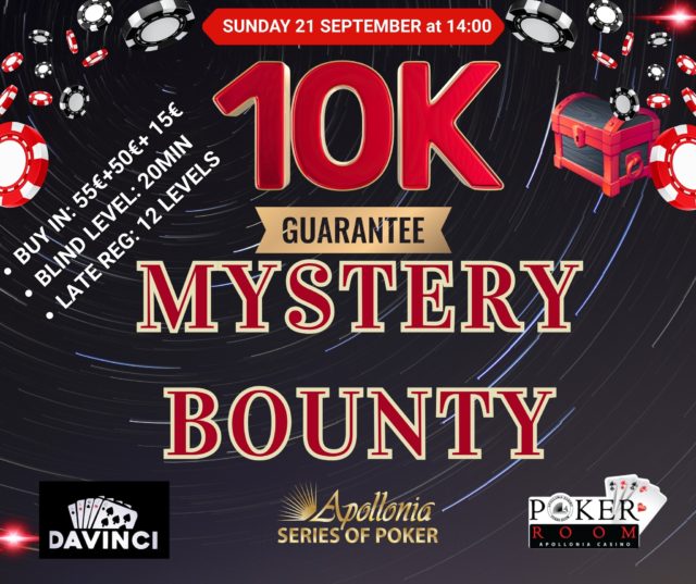 Το Mystery Bounty (14:00) με buy-in €55+€50+€15 και εγγυημένο prize pool €10.000.