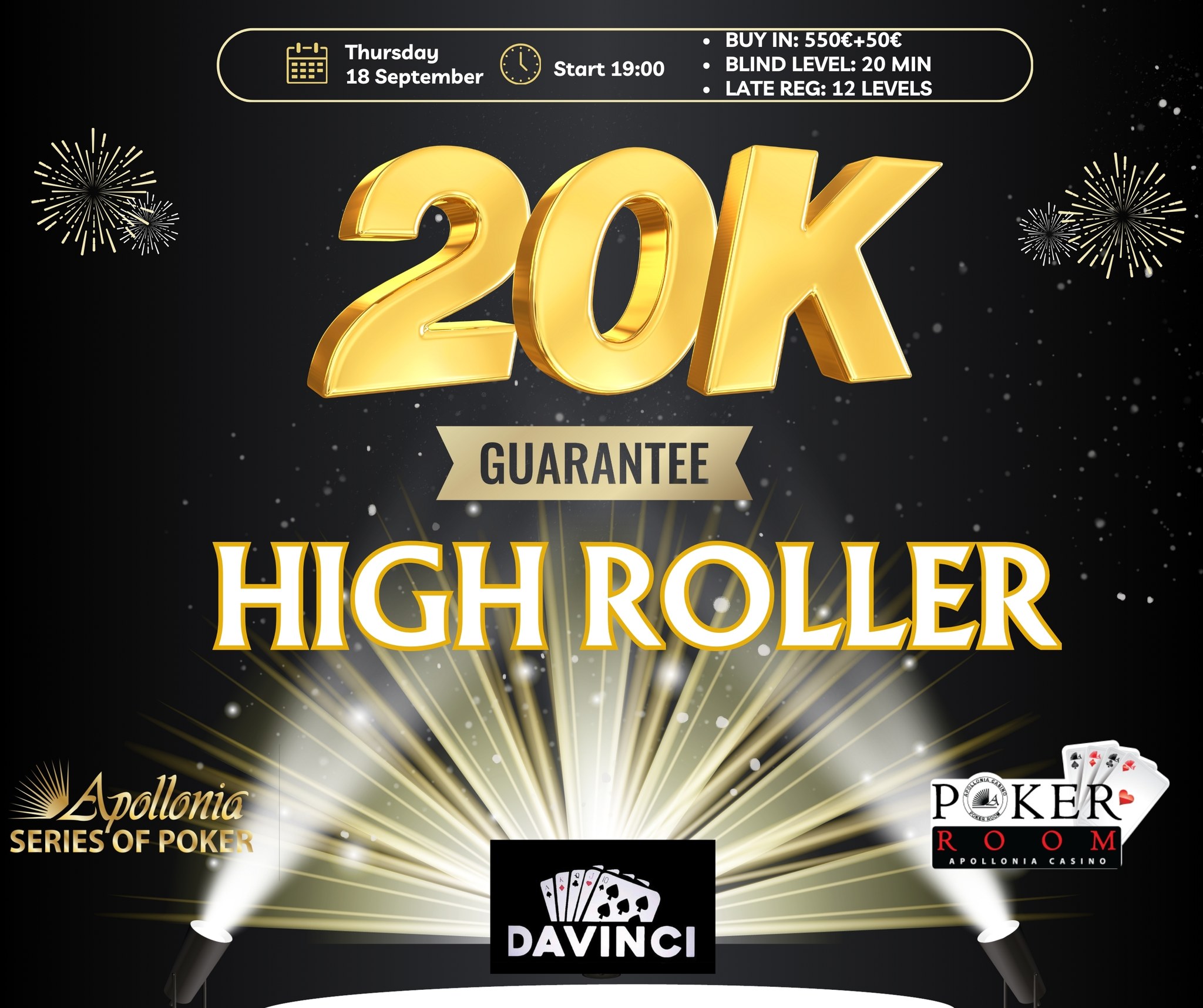 Το εντυπωσιακό High Roller event (19:00) με buy-in €550+€50 και guarantee €20.000.