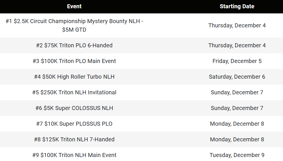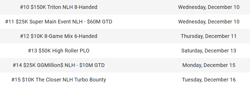 Δύο μόνο events από τα 15 έχουν buy-in κατώτερο των $10.000, το $2.500 NL Mystery με $5.000.000gtd και το $5k NLH Super Colossus!