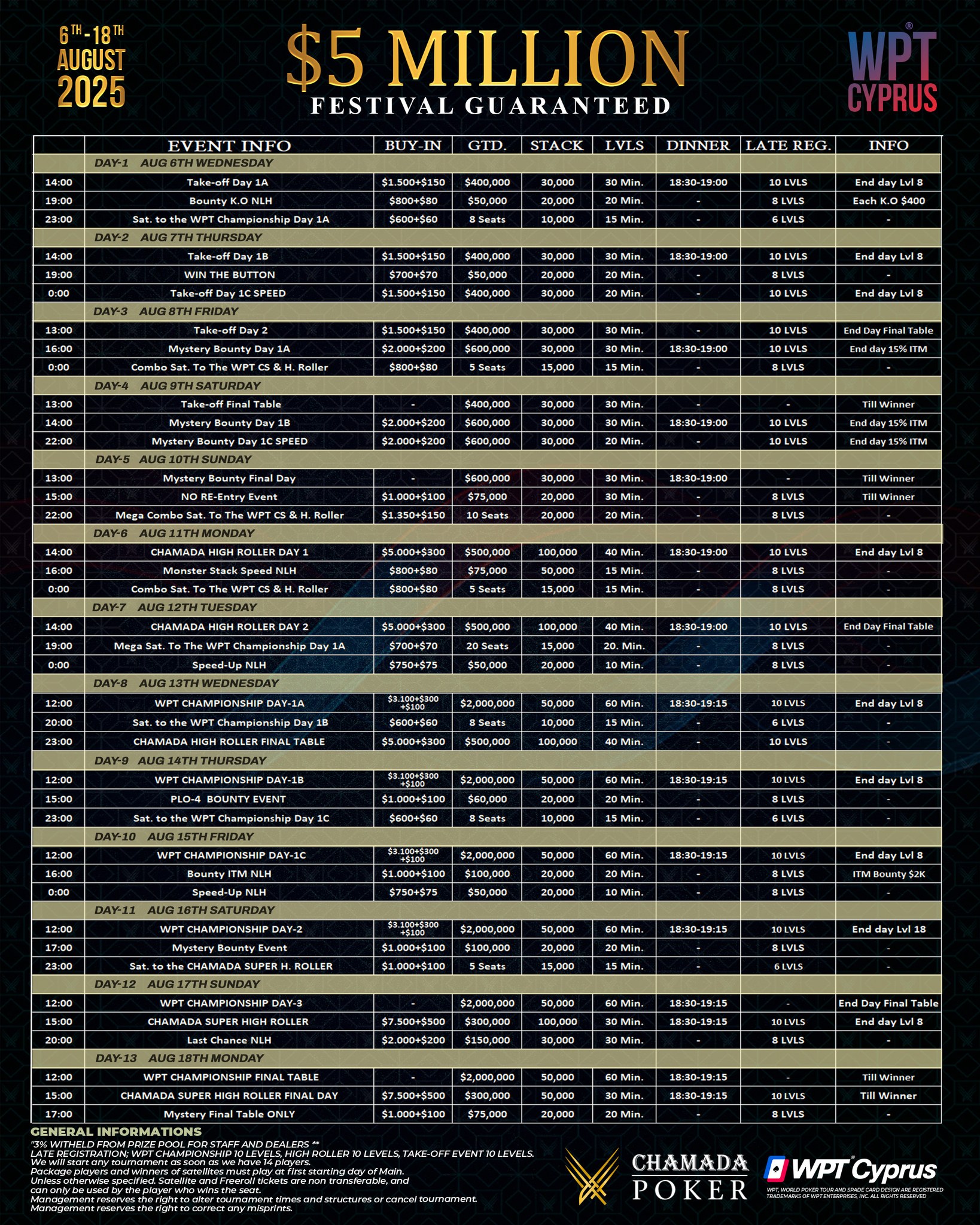Με τουλάχιστον εννέα Κύπριους παίκτες θα διεξαχθεί σήμερα η δεύτερη μέρα του $3.500 WPT Championship στο Chamada Hotel.