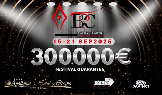 Από τις 15 έως τις 21 Σεπτεμβρίου, το Apollonia Casino θα αποτελέσει το επίκεντρο του live πόκερ στα Βαλκάνια, φιλοξενώντας το Balkan Poker Championship #2. Το φεστιβάλ, που επιστρέφει μετά την επιτυχημένη πρώτη του διοργάνωση, προσφέρει εγγυημένα έπαθλα ύψους €300.000 και αναμένεται να προσελκύσει παίκτες από πολλές ευρωπαϊκές χώρες.