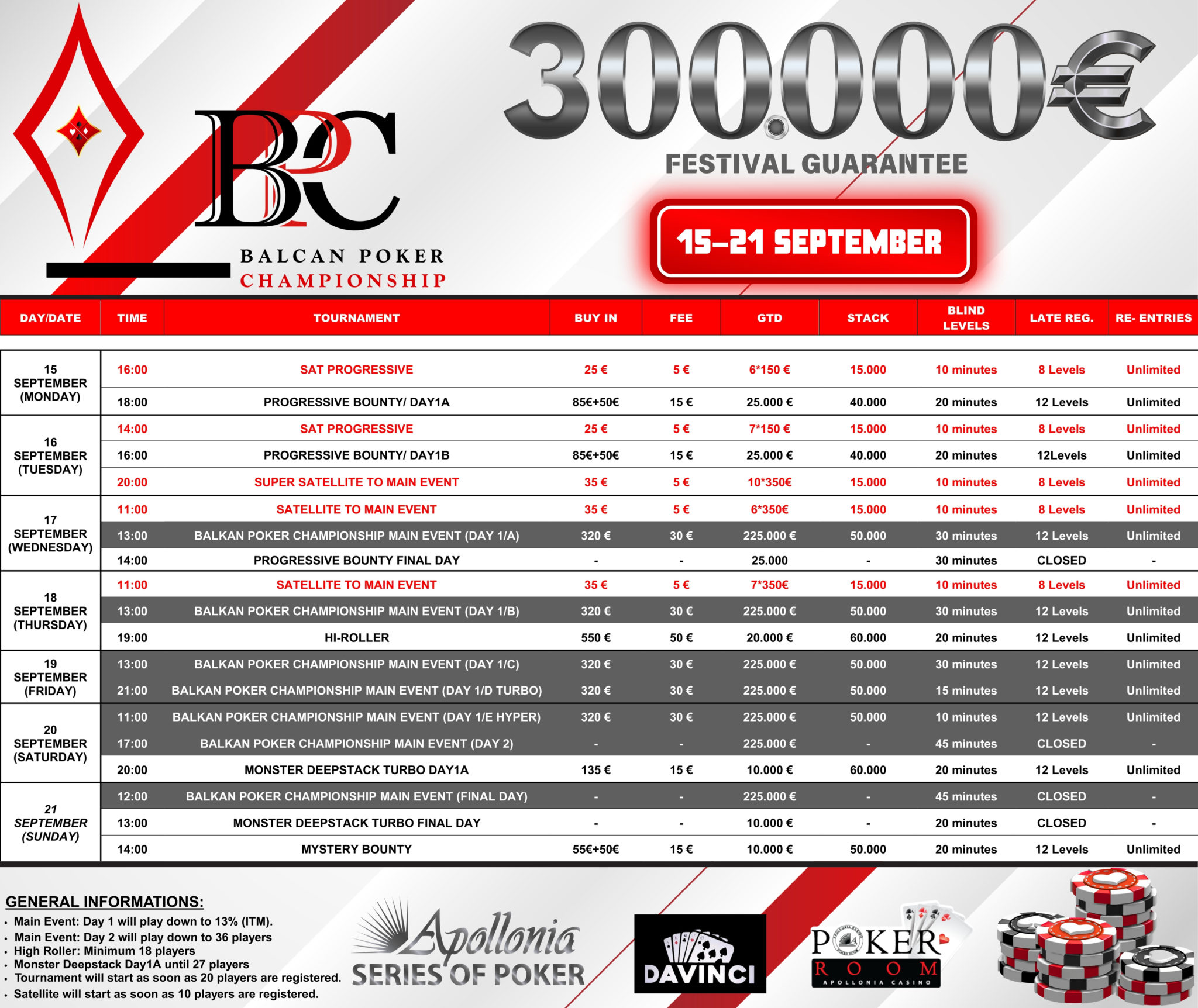 Για περισσότερες πληροφορίες και κρατήσεις, επισκεφθείτε την επίσημη ιστοσελίδα του Balkan Poker Championship: www.balkanpokerchampionship.com