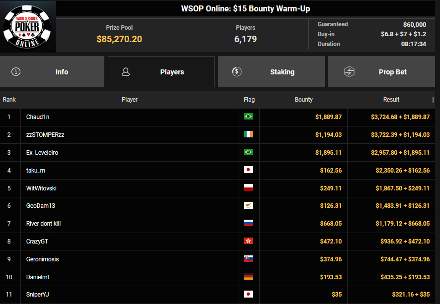Στην 6η θέση του $15 Bounty Warm-Up τερμάτισε τέλος ο “GeoDam13” κερδίζοντας $1.610.