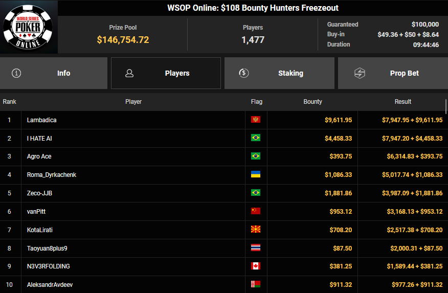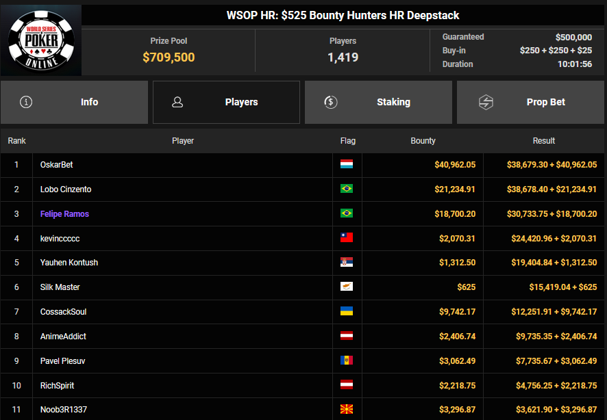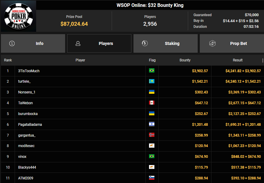 Στην 8η θέση του $32 Bounty King αποκλείστηκε τέλος ο “moditesec” για $1.188.
