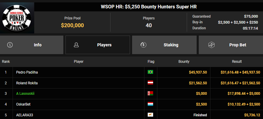 Στην 5η θέση του $5k Βοunty Hunters αποκλείστηκε ο “AELARA33” για $5.736.