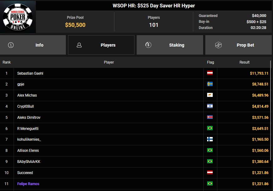 Δύο αξιοσημείωτα σκορ για τον Αλέξανδρο Μίχα που τερμάτισε στην 3η θέση του $525 Day Saver για $6.490 και στην 5η θέση του $525 Hyper για ακόμη $2.610.