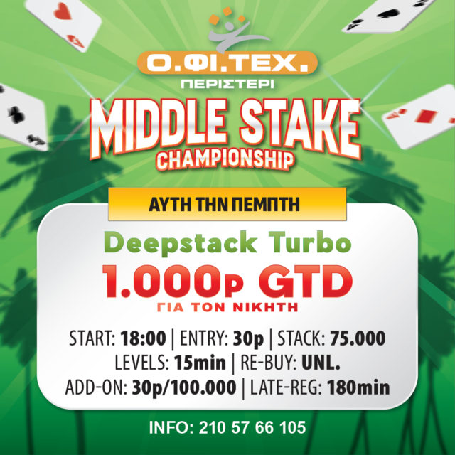 το Deepstack Turbo (1.000p gtd για το νικητή) στο Περιστέρι