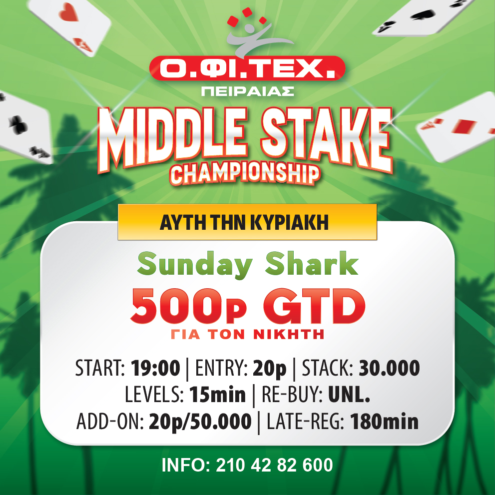 Στις 19:00 το Sunday Shark (500p gtd για το νικητή)