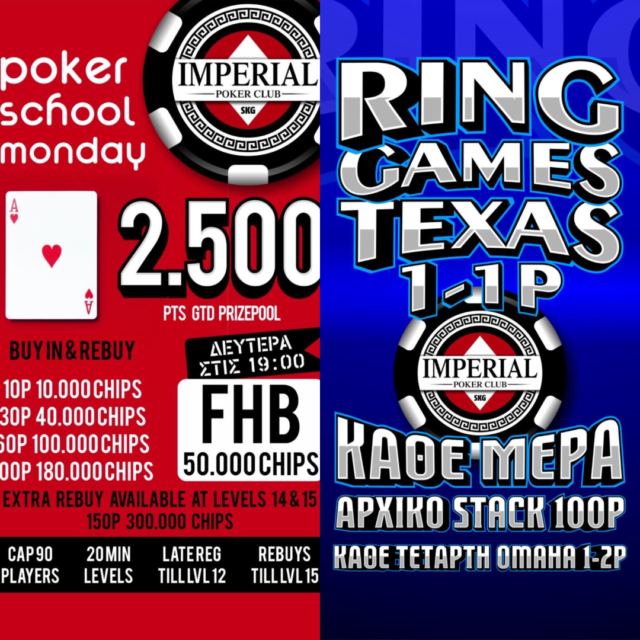 To νέο φθινοπωρινό πρόγραμμα του Imperial κάνει πρεμιέρα απόψε στις 19:00 με το Poker School Monday και 2.500p gtd!