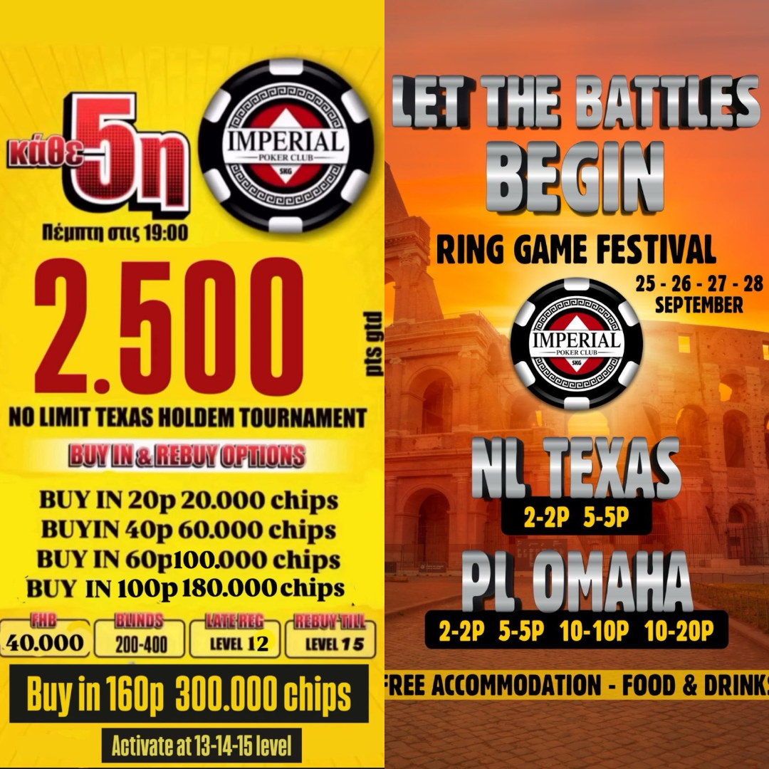 To τετραήμερο 25-28 Σεπτεμβρίου τέλος έρχονται μάχες μέχρι… τελικής πτώσεως σε Texas/PLO τραπέζια με διάφορα stakes και δωρεάν διαμονή/φαγητό/ποτό!