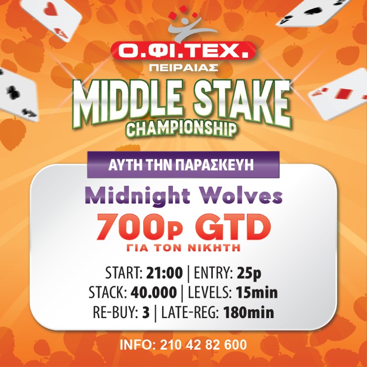 τo freeroll road to Midnight Wolves και το Midnight Wolves (700p gtd για το νικητή) στον Πειραιά