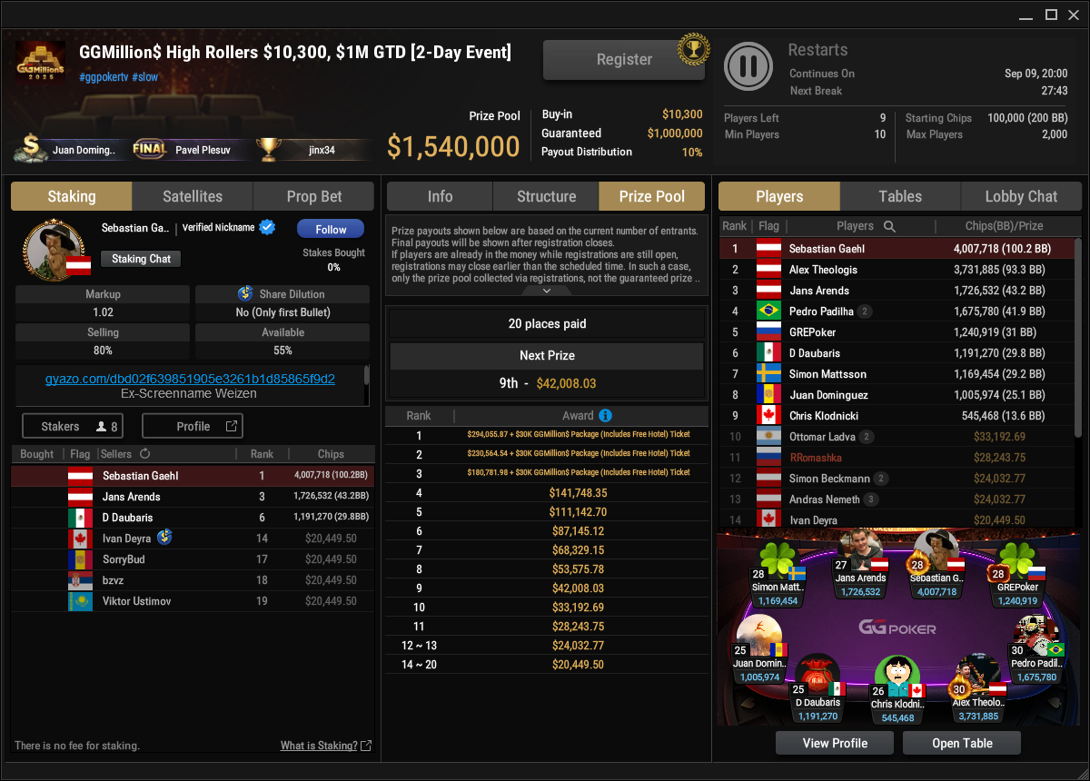 To final table θα διεξαχθεί την Τρίτη και θα μεταδοθεί ζωντανά από τα κανάλια της GGPoker σε YouTube και Twitch και ο νικητής θα κερδίσει $294.055 κι ένα $30k package!!