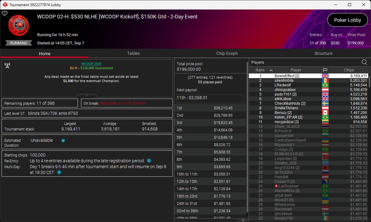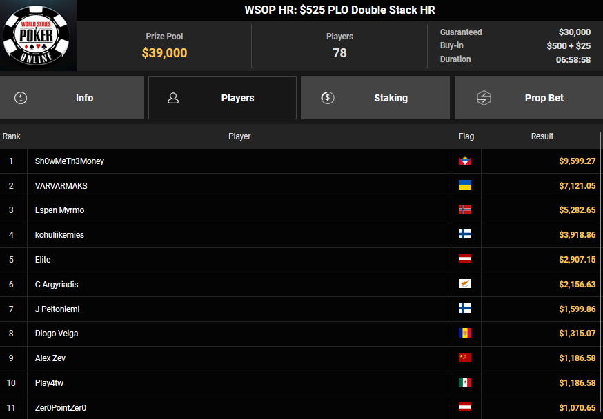 H εκκίνηση του WCOOP επίσης τον βρήκε με δύο μίνι εισπράξεις. Την 20η θέση στο WCOOP #06-H ($1k NLHE PKO) για $1.689 και την 19η θέση στο WCOOP #03-H ($1k NLHE) για $1.573.