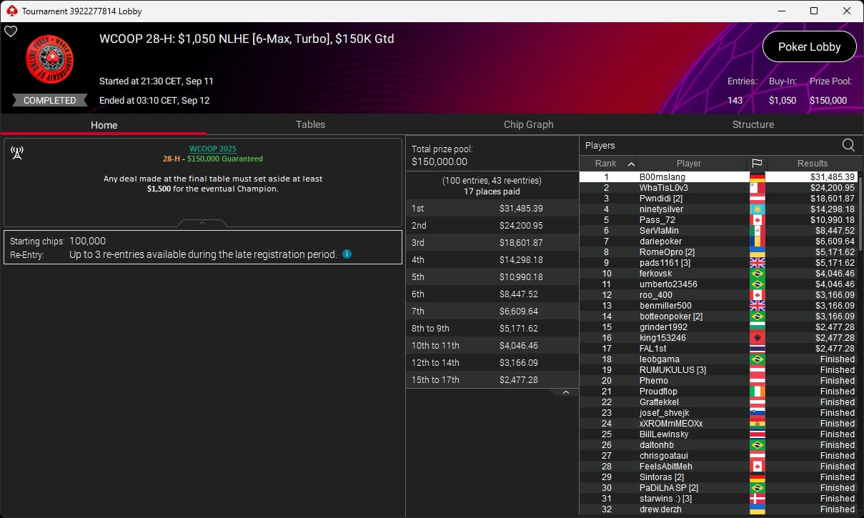 Στην 3η θέση του WCOOP Βig $109 αποκλείστηκε ο Φώτης “BrmNit” Νταμάρης για $5.901.