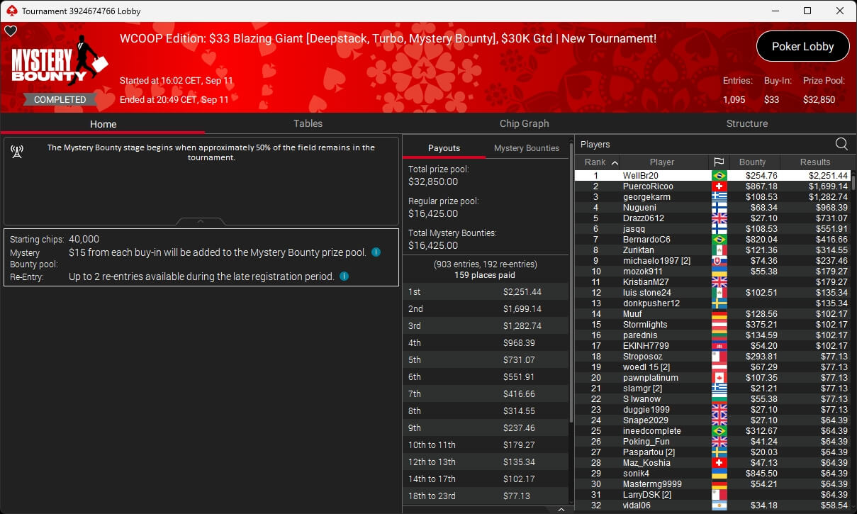 Στην 3η θέση του WCOOP $33 Blazing Giant αποκλείστηκε τέλος ο “georgekarm” για $1.392.