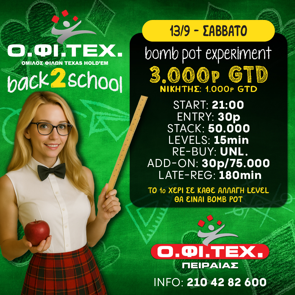το freeroll και το Bomb Pot experiment (3.000p gtd) στον Πειραιά