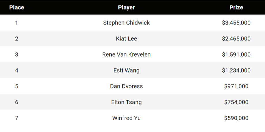 Tον τρίτο του τίτλο στο Triton κατέκτησε ο Stephen Chidwick, ανεβάζοντας τα συνολικά του κέρδη μόνο σε αυτήν τη σειρά πάνω από τα 30 εκατομμύρια δολάρια και συνολικά σε πάνω από $70m!