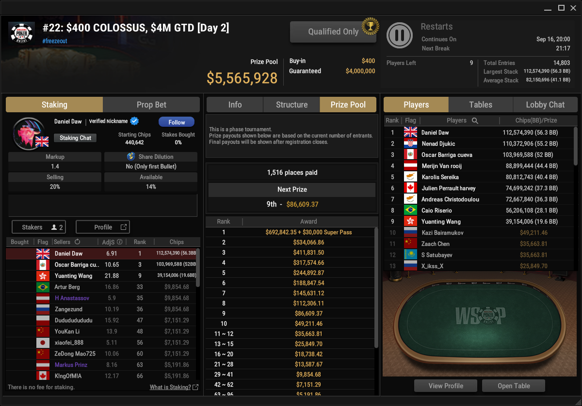 Ο Κύπριος παίκτης έχει εξασφαλίσει $86.609 και η πρωτιά χαρίζει $692.842 κι ένα $30k super pass!