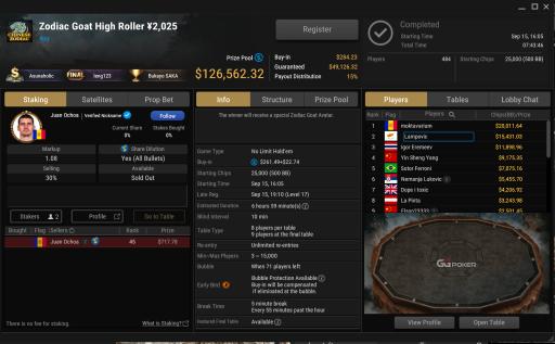 Στο heads-up του Zodiac Goat High Roller έφτασε ο Ανδρέας “Lampovic” Μαυρομουστάκης, αλλά ένα AK vs A10 στο φινάλε (straight o τελευταίος) του στέρησε την πρωτιά και τον αποζημίωσε με $15.431!