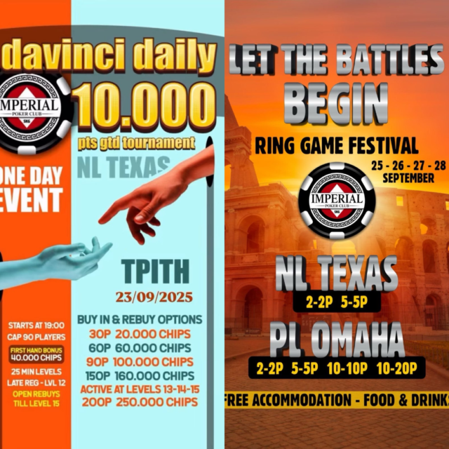 Mην ξεχνάτε πως έρχεται την Τρίτη το Davinci Daily 10k gtd (τα δύο προηγούμενα 18k και 16k) αλλά και ring games festival στα τέλη της εβδομάδας.
