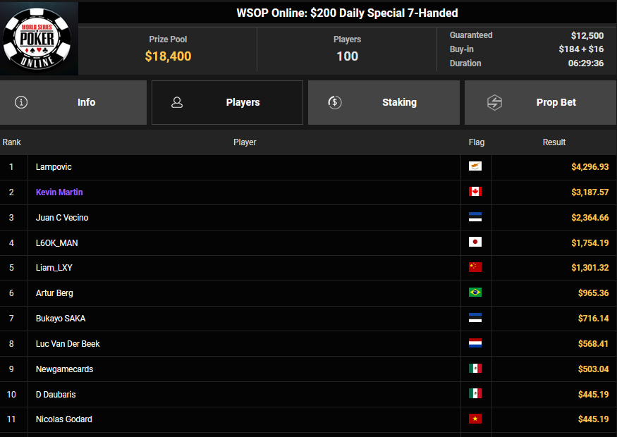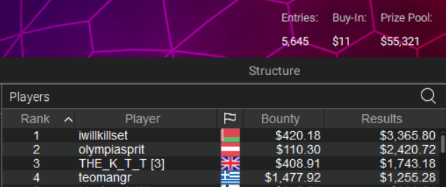 Στην 4η θέση του WCOOP side event ($11 NLHE Μystery) τερμάτισε εξάλλου ο “teomangr” για $2.783.
