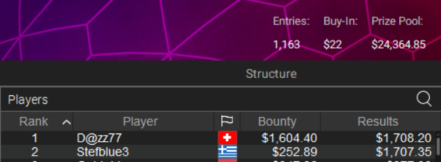 Στο heads-up του WCOOP side event ($22 NLHE PKO) ηττήθηκε τέλος ο “stefblue3” για $1.960.