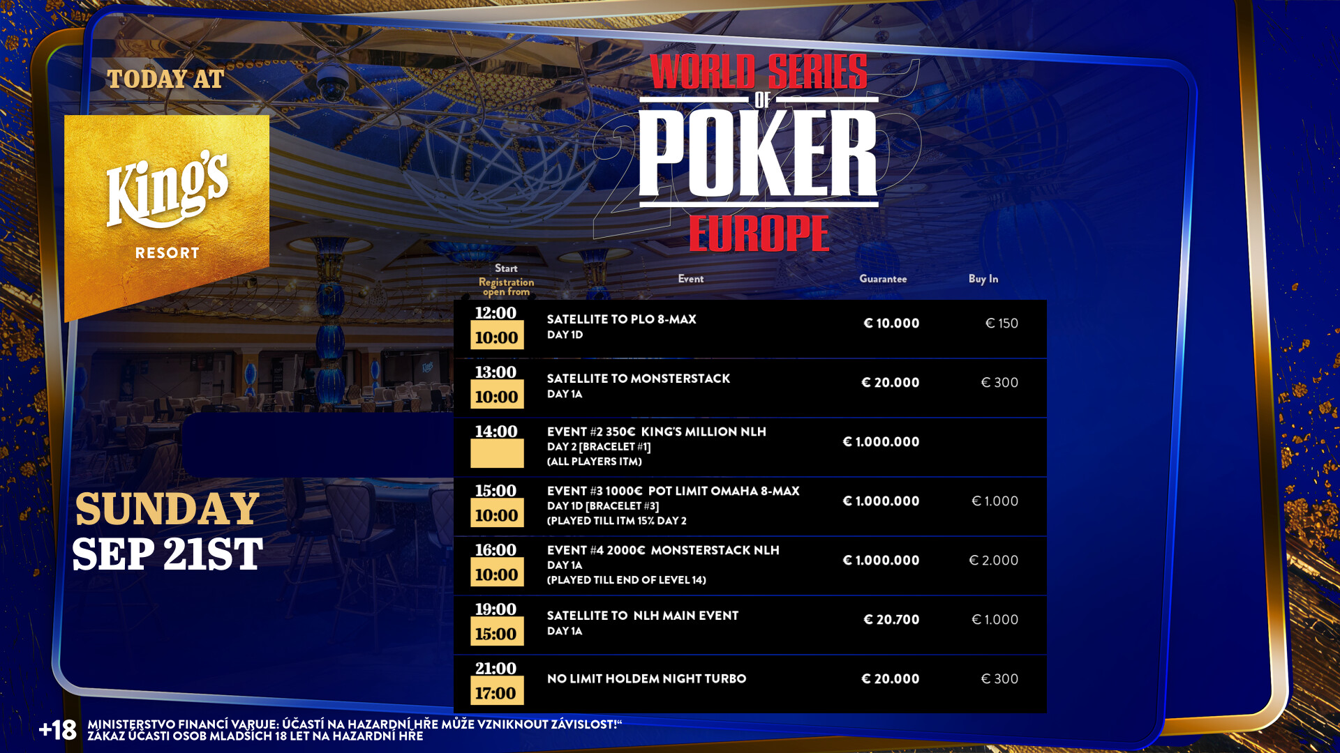 Mε ιδιαίτερο ενδιαφέρον αναμένεται σήμερα το event #2 (€350 ΝLHE) του WSOP Europe που φιλοξενείται στο King’s resort του Rozvadov.