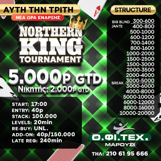 Ο.ΦΙ.ΤΕΧ.: Northern King στις 17:00 με 5.000p gtd