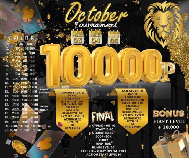 H βραδιά σήμερα – όπως κάθε Τρίτη – είναι αφιερωμένη αποκλειστικά στα δημοφιλή 1p/2p ring games, ενώ το τριήμερο 3-5 Οκτωβρίου έρχεται ακόμη ένα special event με 10.000p gtd!