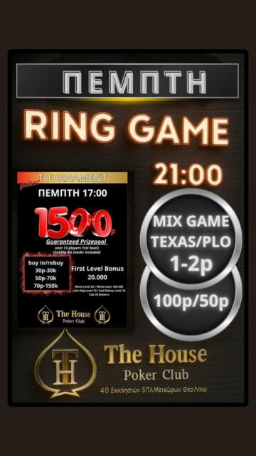 Οι φίλοι των τουρνουά έχουν σήμερα επιλογή με το The House Poker Club να διοργανώνει ένα event με 1.500p gtd!