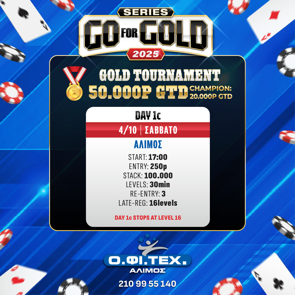 Στις 17:00 η Day 1c του Gold tour (50.000p gtd)
