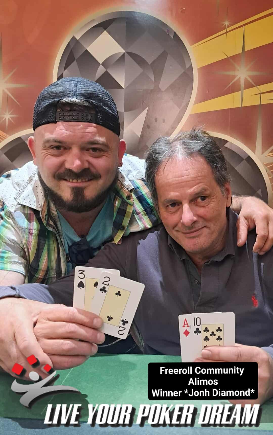 Στο Sunday Challenge του Περιστερίου (83r/100r/34a) υπήρξε συμφωνία ανάμεσα σε Κρίστο Καλέμι (1.700p), K.Krou (1.250p) και Φώτη Σκέντι (1.200p), ενώ στο freeroll του Αλίμου (20e/115r) o John Diamond (φωτο) επέστρεψε στις νίκες.