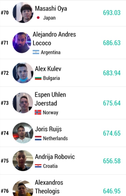 Αλέξανδρος Θεολόγης στη θέση #76 με 647 πόντους
