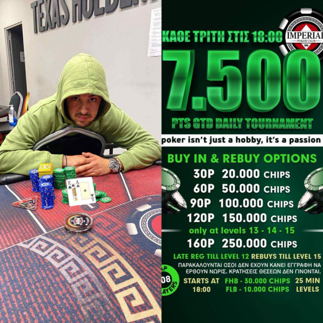 Ο Αγωνιστικός σύλλογος Texas Hold’em ‘Imperial club’ εδρεύει στη Nέστου 4 στην Πολίχνη (Ανθόκηποι), πλησίον του γηπέδου του Μακεδονικού.
