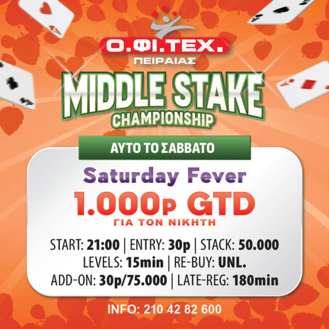 το freeroll και το Saturday Fever (1.000p gtd για το νικητή) στον Πειραιά