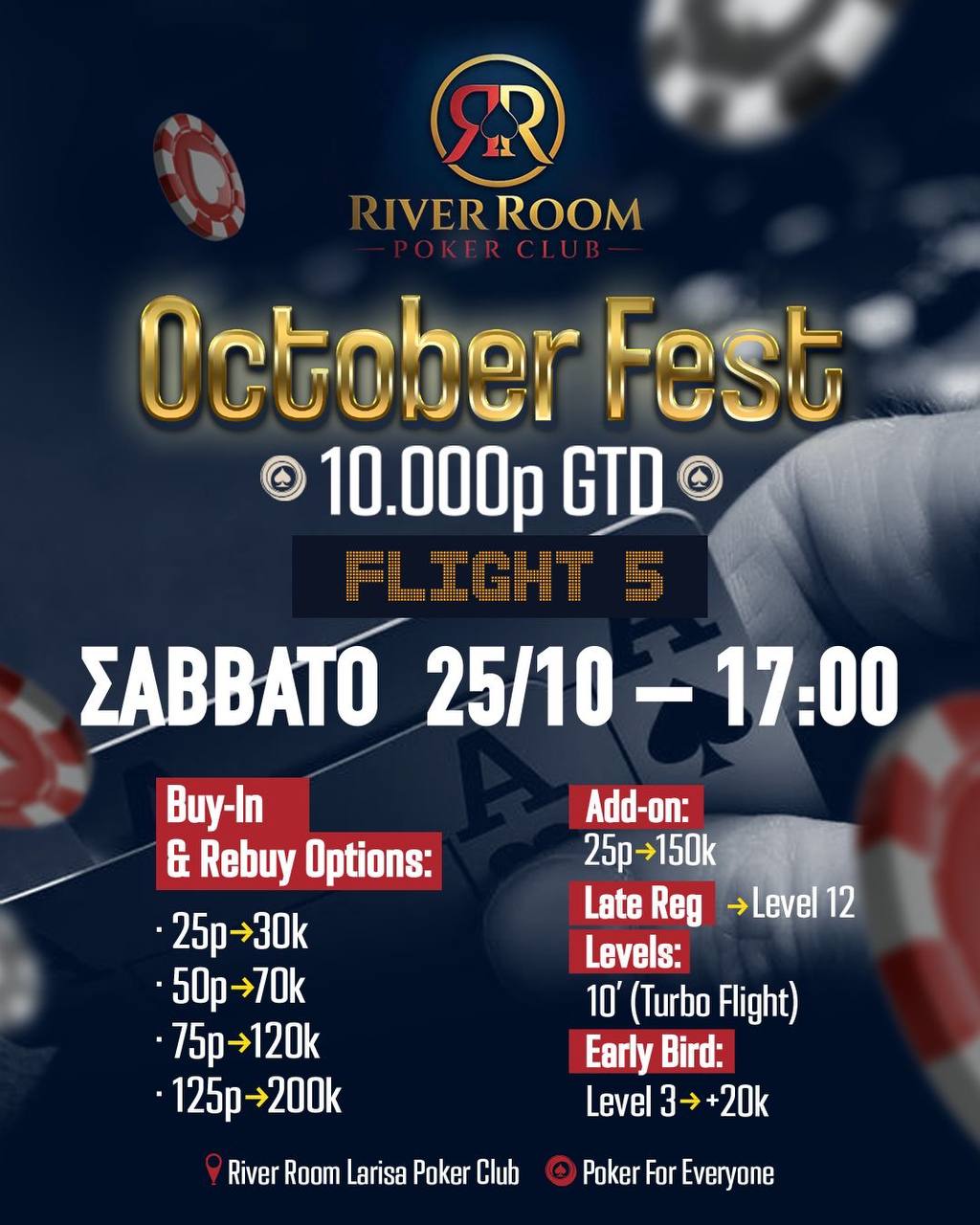Mέρα τουρνουά η σημερινή στο River room της Λάρισας με το τέταρτο flight του Octoberfest να αρχίζει στις 18:00!