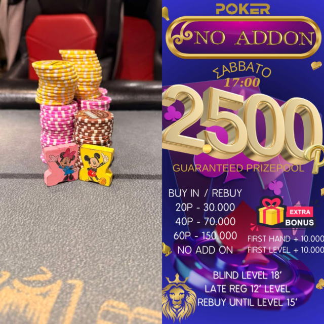 Λίγο νωρίτερα όπως κάθε Σάββατο (17:00) η έναρξη του No Addon που συνοδεύεται και πάλι από 2.500p gtd! Για τους φίλους των ring games φυσικά δεν θα λείπουν και τα Texas/PLO games τις βραδινές ώρες.