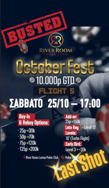 Το guarantee του Octoberfest… διαλύθηκε, 19 παίκτες… περιμένουν ήδη την Κυριακή και μια τελευταία ευκαιρία έρχεται σήμερα στο River room της Λάρισας με το τελευταίο flight!