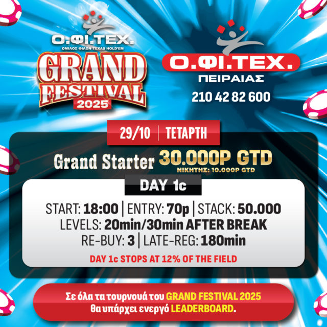 τη Day 1c του Grand Starter (30.000p gtd) στον Πειραιά