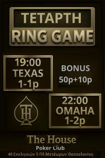 To The House Poker Club φιλοξενεί και σήμερα ring games στις δύο δημοφιλέστερες παραλλαγές!