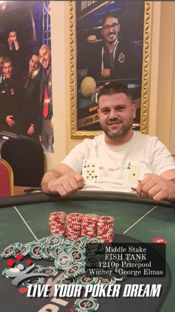 Στο Fish Tank του Περιστερίου (37e/28r/19a) ο George Elmas (φωτο) ήταν αυτός που εξασφάλισε τους 500p της πρωτιάς!