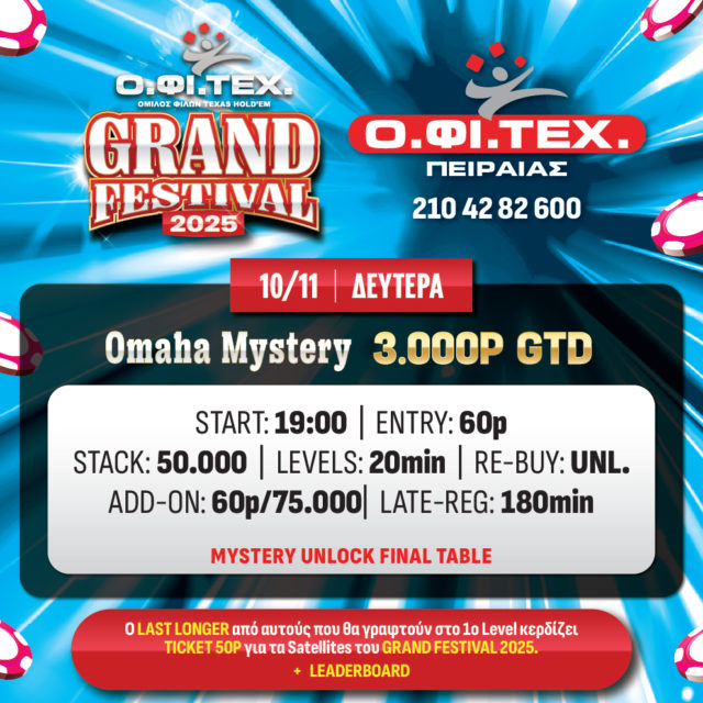 Στις 19:00 το Οmaha Mystery (3.000p gtd)
