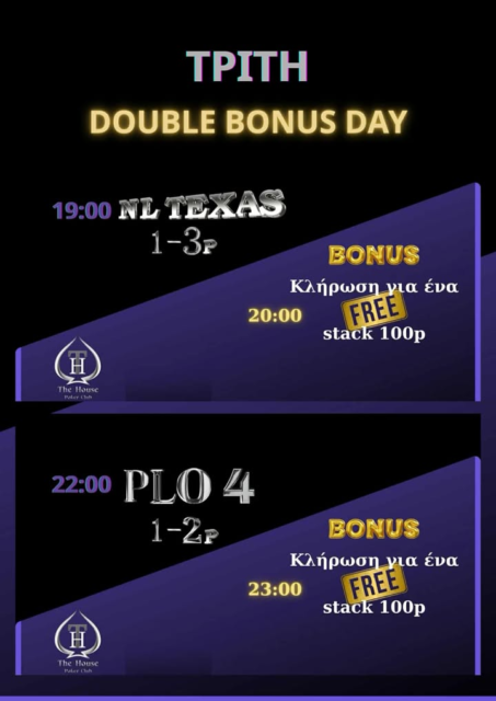 - Από τις 19:00 τα 1p/3p Texas games με bonus κλήρωση 100p stack (στις 20:00)