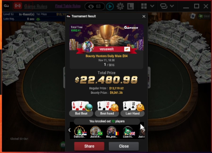 Online poker: Πρωτιά “veruswelt” σε live stream για $22.481!