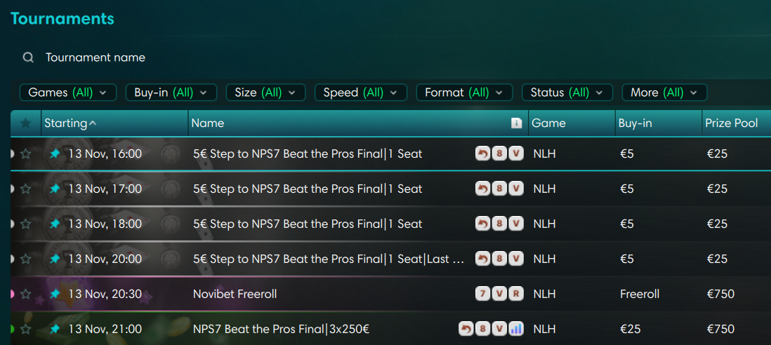 Mπορείτε να βρείτε εύκολα τους προκριματικούς ανοίγοντας την πλατφόρμα της Novibet Poker και κατευθυνόμενοι στο Novi-X > Live tournaments.