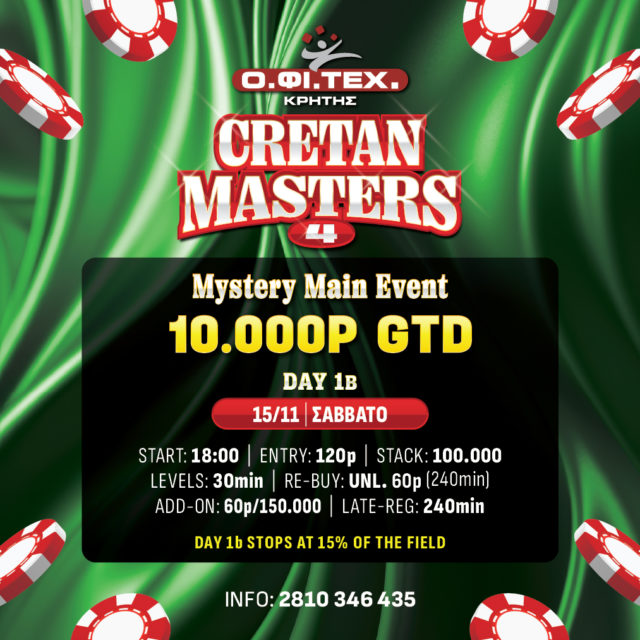 και τη Day 1b του Cretan Masters (10.000p gtd) στο Ηράκλειο Κρήτης