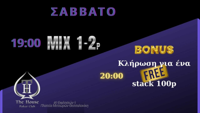 The House Poker Club: Σαββατόβραδο με mix games και bonus-κλήρωση