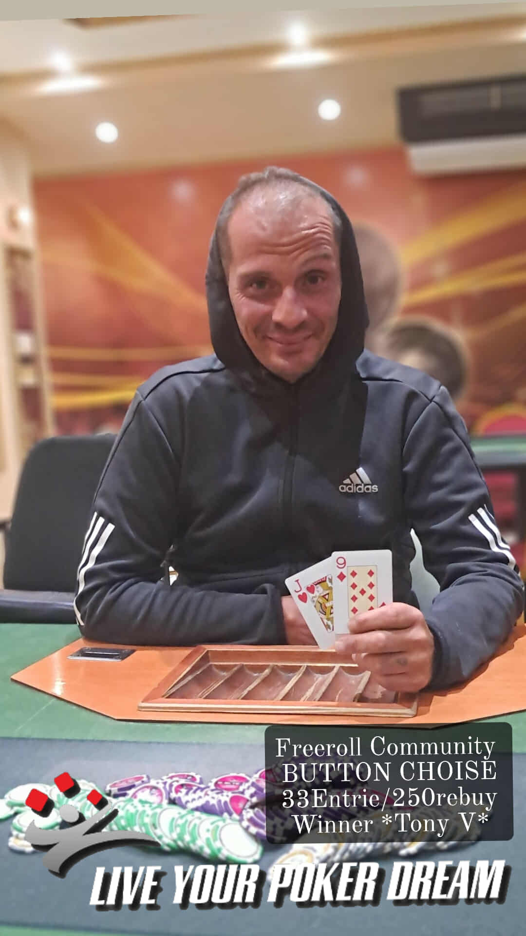Tέλος στο freeroll του Αλίμου (33e/250r) νικητής αναδείχθηκε ο “Tony V”.
