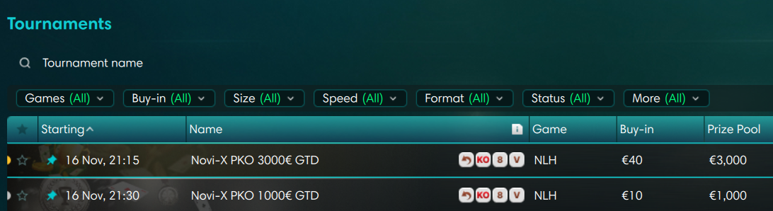• Στις 21:30 το €10 NLH PKO με €1.000gtd