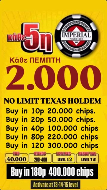 Ιmperial: Τουρνουά από μόλις 10p και 2.000p gtd
